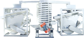 該機組主要由上料斗、原料提升機、脫分主機、控制柜組成。